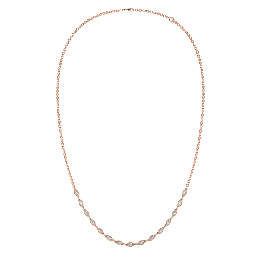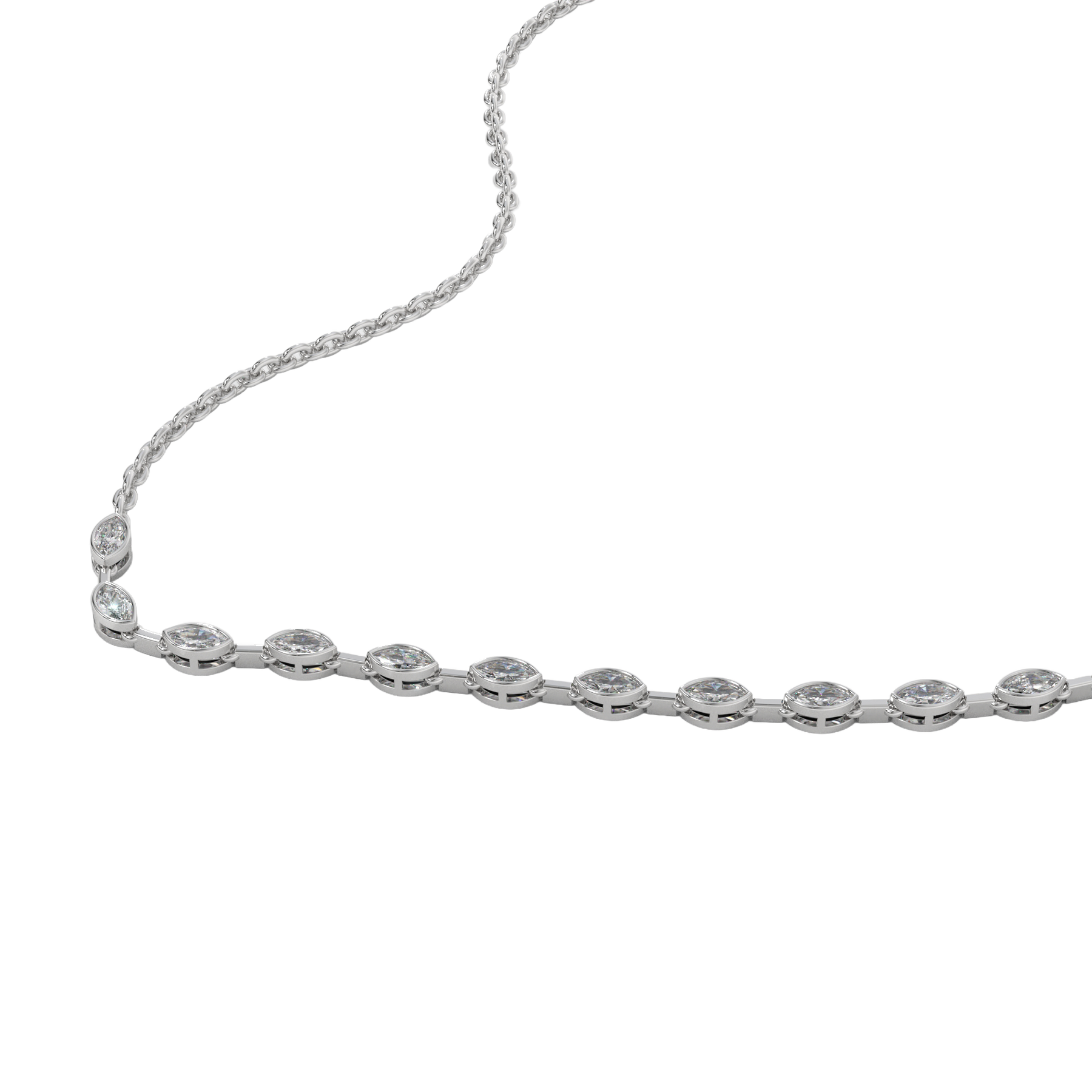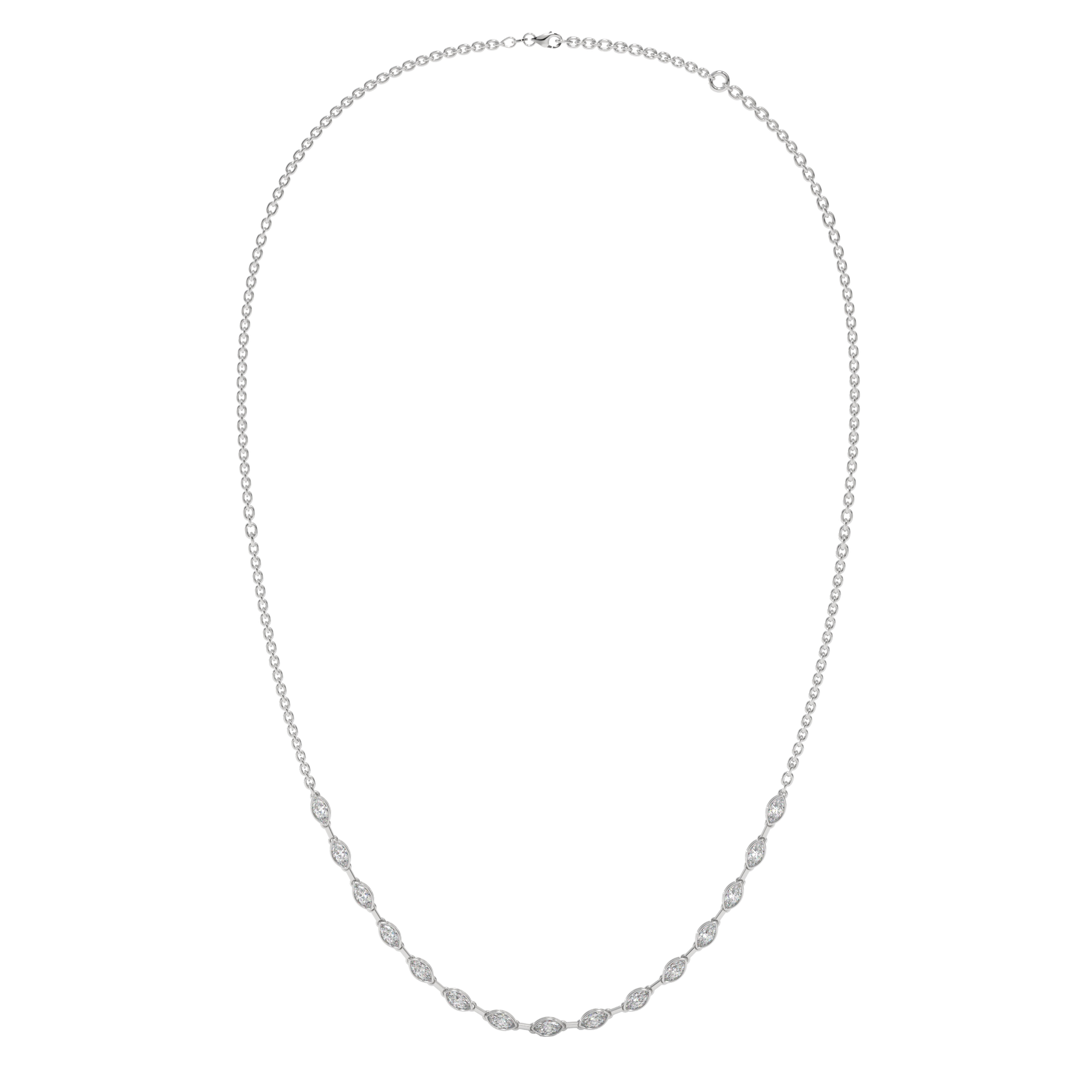 Metal: 14K White gold necklaceStone: 18 Marquise Diamonds (0.55 ct) (G-H/ SI)Size: 16-18 in diamond cut bead chain 1.1mm